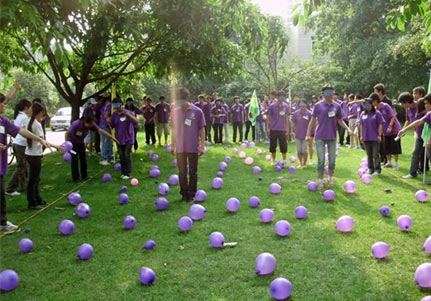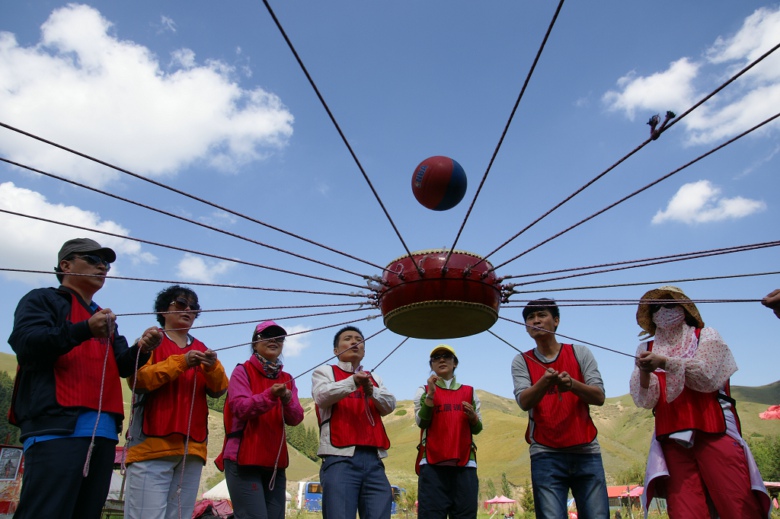云南麗江團隊戶外拓展訓練團建公司—拓展培訓方案項目推薦之鼓動人心/擊鼓顛球