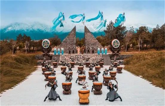 這里有讓人敬畏的敬山石碓,那是早期游牧?xí)r代的人們,用石碓祭山神的習(xí)俗,是對大自然的尊重和崇拜的體現(xiàn);這里有最驚艷的山水情景迎賓秀,用最高規(guī)格的迎賓儀式迎接來到這里的每一個(gè)人,而在幾百年前的木府,就是用同樣的方式迎接過武功卓絕的元世祖——忽必烈還有明朝開國功臣——沐英還有縱情于山水的偉大旅行家——徐霞客。