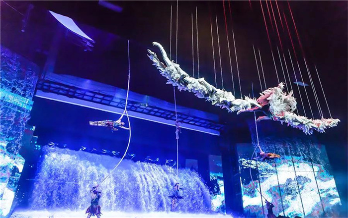 其中最讓人深刻的便是聲光電高科技手段的呈現,它運用到了360度全景劇幕、水中垂直升降大搖臂、350平水舞臺、400 平具有分屏錯屏功能的LED屏、大型月亮裝置、雪山機械模型等超過30種先進舞臺技術與道具裝置,呈現如夢似幻的感官體驗,完全打破了藝術類型的界限,讓每個角落都充滿藝術的張力,震撼觀眾的視覺、聽覺神經,享受到一場超越時空、突破極限的視覺盛宴與夢境之旅。是到麗江不可錯過的文化大餐,一生必看的演出。