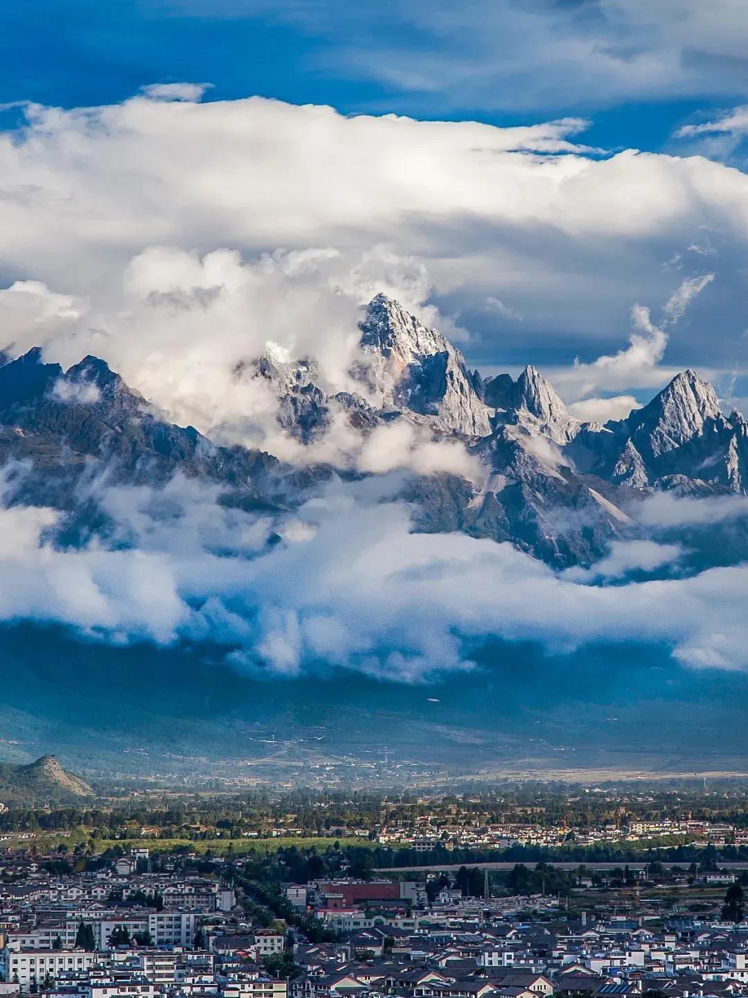 玉龍山下華僑城位于大研、束河、白沙三座古城中心,遠(yuǎn)眺玉龍雪山,毗鄰約600畝中濟(jì)海濕地。