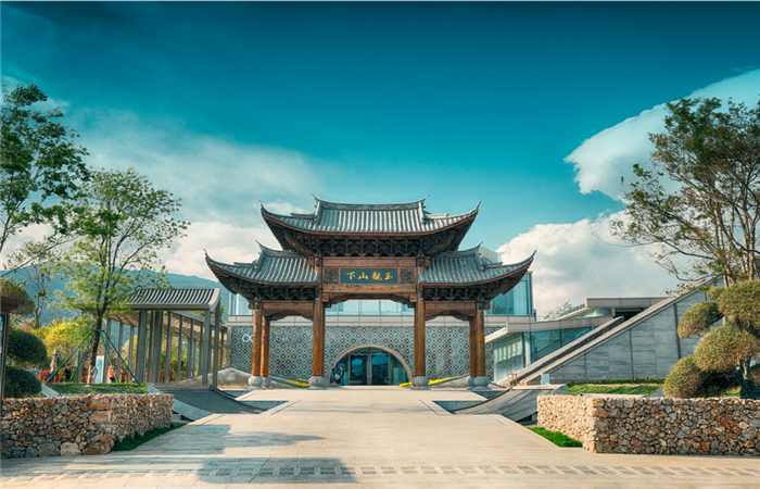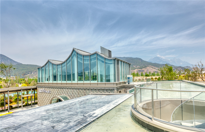 目前已完工的售樓部,總能讓人產(chǎn)生錯(cuò)覺,闊大寫意的建筑像一個(gè)夢(mèng),輕輕落在玉龍山下。清晨,輕柔的山嵐之氣圍繞著它,在莫蘭迪的淺灰里,古老的山風(fēng)緩緩吹過,像一首悠揚(yáng)的歌。從這個(gè)是被旅行者稱為“天堂一角”的地方看出去,是濃縮了雪山清風(fēng)雨露和納西文化氣息的美景。