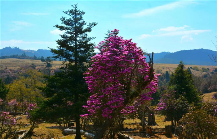 林納閣里生長的映山紅、大杜鵑和小杜鵑,依氣候和海拔不同而花期不同,每年三月初開始從低山到高山依次盛開,花期將持續到六月底。姿態各異的杜鵑花在林納閣山間綻放,喜歡踏青拍照的朋友們,若是錯過了桃杏李花相伴,又未趕上春櫻燦爛,可不要再錯過杜鵑花了。“五一”假期,這里適合放松心情,美景讓你大飽眼福。