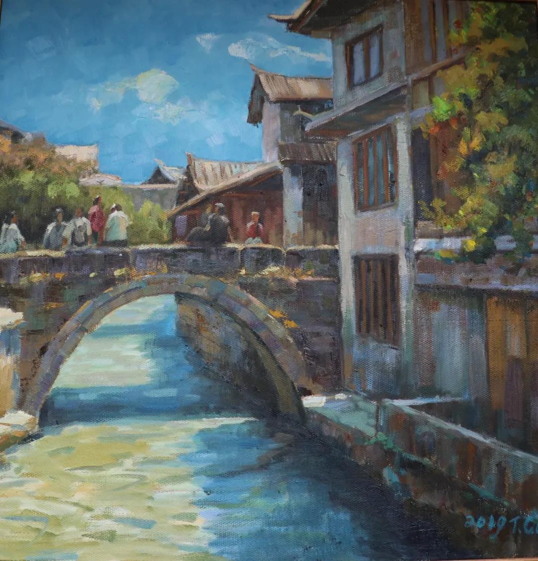 “每天走的都是同一條路,但看到景卻不同的。”陶剛說,有陽光灑下的地方不是一成不變的,像古城的街道、橋梁、河流,隨著時間推移它們所呈現出來的美也不盡相同,讓他有著強烈的愿望把它們畫下來。