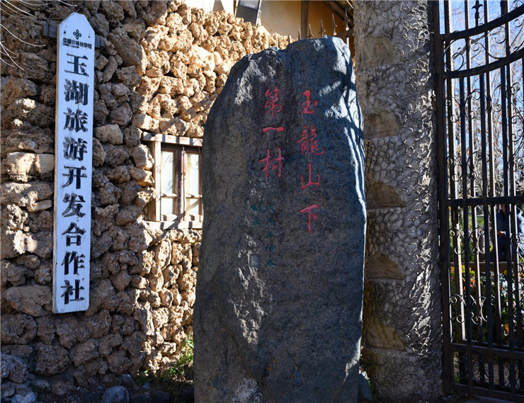 玉湖村就坐落在玉龍雪山腳下,從白沙古鎮開車過去10多分就可以到,公交17路和6路也可以到玉湖村廣場。如今的玉湖村也有一定程度的旅游開發,好在并不嚴重,依然保持著最初的風貌,在玉湖村廣場旁可以看到這塊石碑,石碑上刻有“玉龍山下第一村”七個大字。關于玉湖村的建村歷史,并沒有太多的記載,但它的歷史絕對比白沙古鎮更為悠久,據說早在明代時,木氏先祖就在此開挖人工湖、興建避暑夏宮、養鹿場等,而最早生活在這里的人正是為納西王護宮養鹿的人,為木氏先祖的發源地之一,在許多納西民歌中也經常提到這里的玉湖和雪山鹿場。