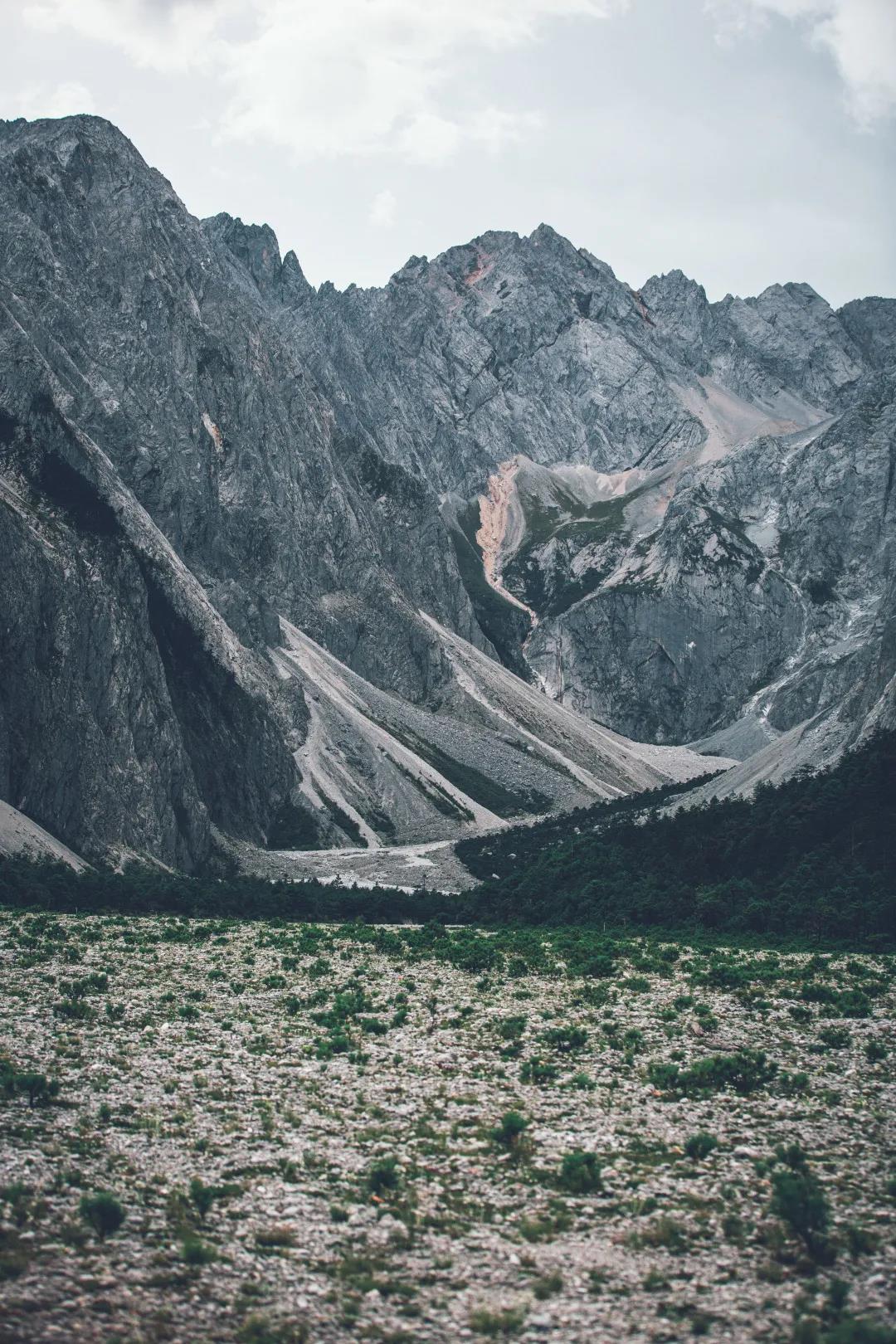 此時山澗的霧氣開始漸漸散去,看到山脊上十分陡峭,順著雪山旁的石子路往深處走去,山脈比平時遠觀顯得更加壯闊。