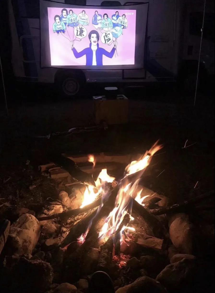 要說篝火和什么最搭配,當然是露天電影啦!圍著篝火,找一個靠背椅,溫暖舒適,伙伴們看起露天電影來。