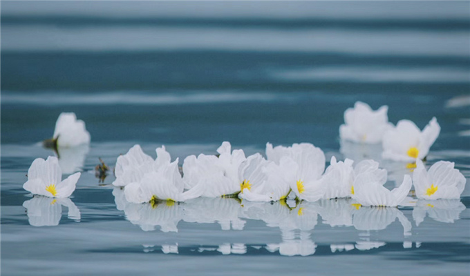 花朵白色,根莖深入水底。在無風、陽光充足的時候,她會穿過潔凈的湖水,在湖面上連綿不絕地盛開著。陰天或是深夜,她便收攏花瓣,潛入水底。
