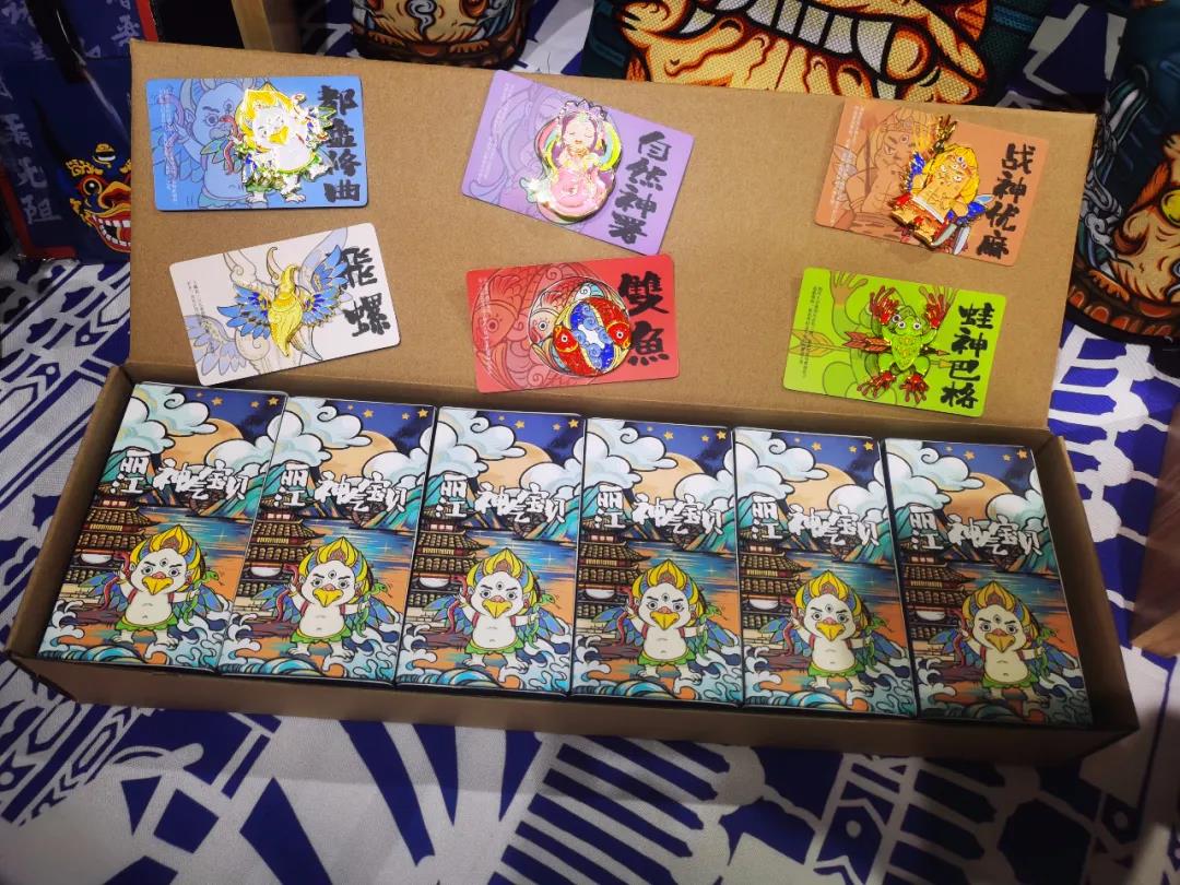 這一系列文創的靈感來源是納西族神話傳說中的神。將東巴神譜中的自然——大鵬鳥修曲、戰神優麻、吉祥雙魚、神蛙巴格、海神飛螺等用卡通的形式表現出來,用年輕化的方式來表達納西東巴文化。以此為基礎,從創意文具、家居用品到服裝衣帽,打造的一系列色彩鮮艷明亮的國潮風格文創產品。設計上大膽創新、迎合年輕人品味,又注重適用性、實用性,麗江的神氣寶貝相當神氣,圈粉無數。