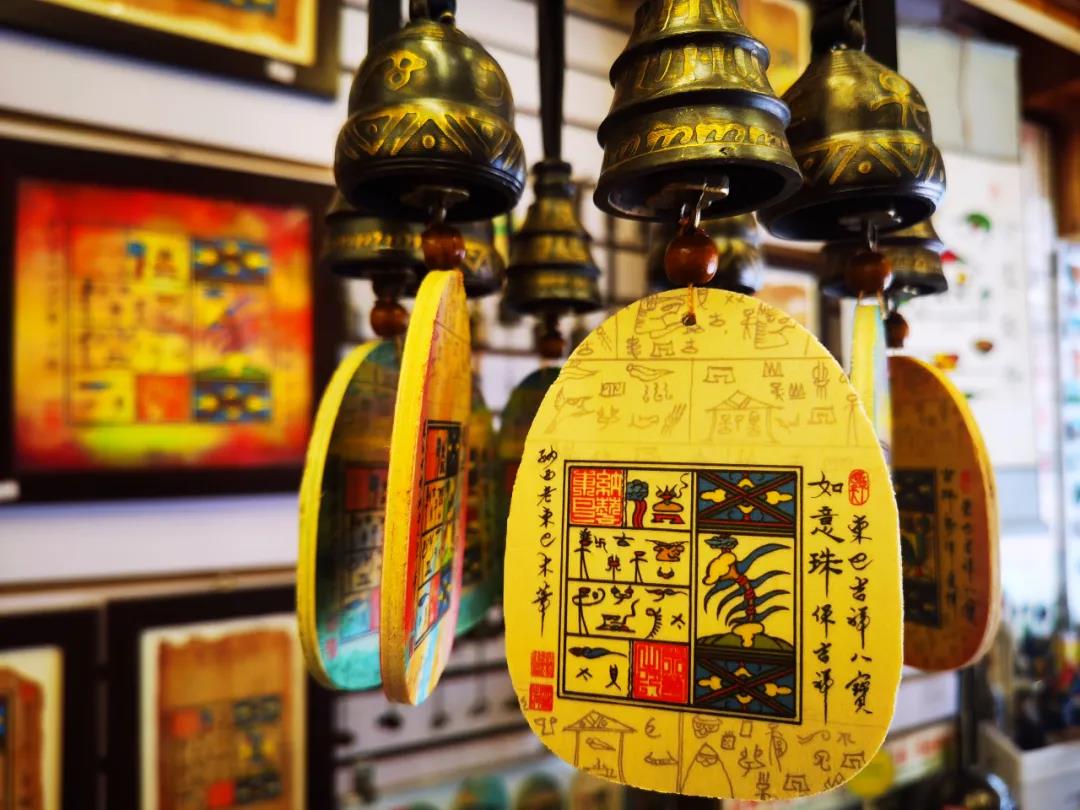 2003年,在麗江取景拍攝,由孫儷、何潤東主演的電視劇《一米陽光》爆火,隨之火起來的還有麗江古城和古城里的銅鈴。如今,古城五一街上還藏著一家與當年的電視劇頗有淵源的銅鈴店,看似不起眼卻相當受歡迎。店主是曾經參與《一米陽光》電視劇中銅鈴道具制作的民間手藝人,那么多年堅持做銅鈴不曾改變,還注冊了“東巴吉祥鈴”的商標,如今店里所有的東巴吉祥鈴均為手繪原創作品,每一個都獨一無二。東巴吉祥鈴帶有祝福、好運之意,快20年過去,依然是麗江的一道文化符號和象征。