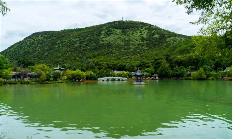 作為麗江的地標性景點之一,黑龍潭的美不僅蘊藏了中國山水文化的美,更多了一些地方的靈氣。黑龍潭的泉水從象山腳下的古栗樹下涌出,匯成一汪湖水,清澈如玉,水底游魚穿梭在水草間,潭畔花草樹木繁茂,樓臺亭閣點綴其間,與園中亭臺樓閣爭相輝映,遠遠望去,就像是一幅醒來的畫,身處其中時,這一切又仿佛應了“只緣身在此山中”的景,這方寸之間,又成了一個遺世獨立,遠離紛繁的地方。
