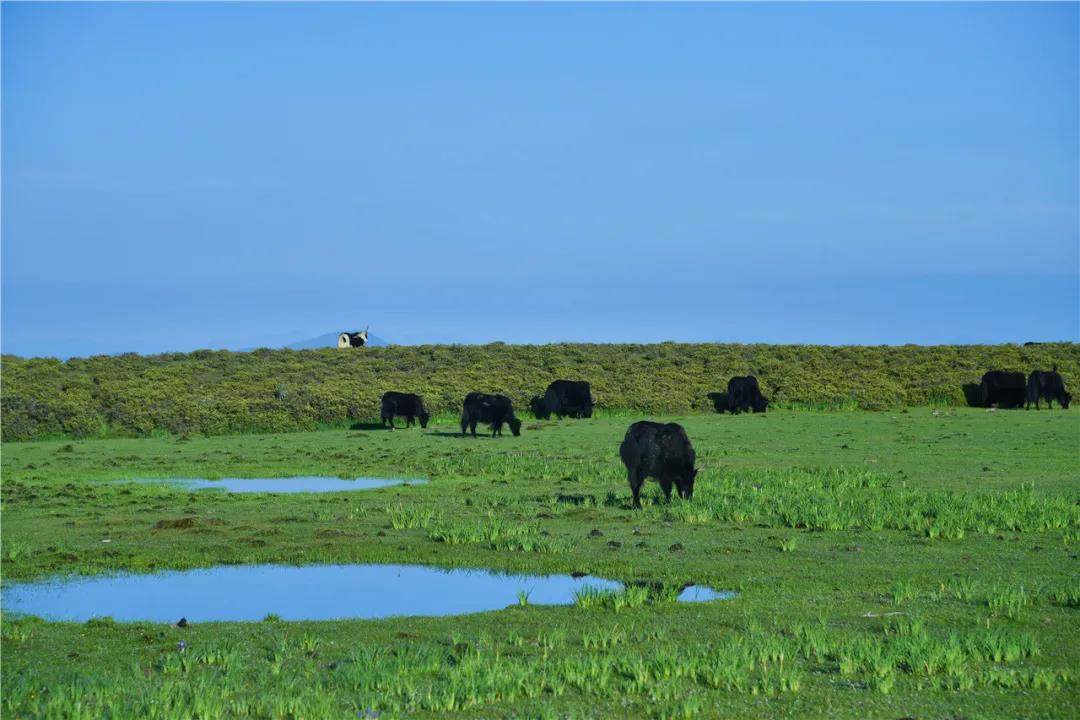 微風拂面,藍天白云,青青草原,清澈湖泊,牛羊成群……在格拉丹,隨處可見美輪美奐的畫卷,在這樣的美景面前,總會感覺照片不及眼睛看到的美。置身于此,把美景盡收眼底,吸收夾雜著泥土、花香、青草香味的空氣,切身感受大自然的神奇與美,你會不禁感慨——“人間值得”。