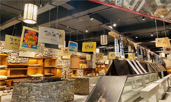 這里有東巴傳奇——文化長廊展現的是以納西族獨有的民族文化(東巴文化)為設計依據,結合麗江當地獨有的納西建筑風格,通過圖片、影像和文字的生動結合,涵蓋納西節慶、納西婚俗、納西建筑、納西服裝、納西祭祀等內容。