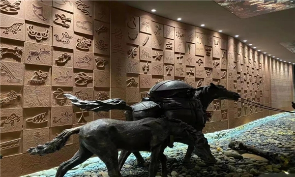這里有“唯一活著的象形文字”——東巴象形文字墻。其長33米,高2.5米,東巴文單字700余個,共分為9大類別。東巴文是納西東巴所使用的一種民族文字,是世界記憶遺產,被譽為世界上現存的“唯一活著的象形文字”。