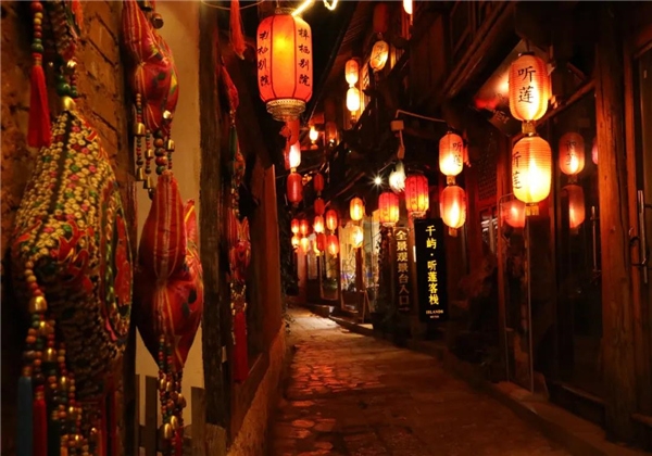 束河的美自然無需多言只在街巷上漫步游走看看清幽的街巷也會心生歡喜,夜幕降臨華燈初上束河古鎮。