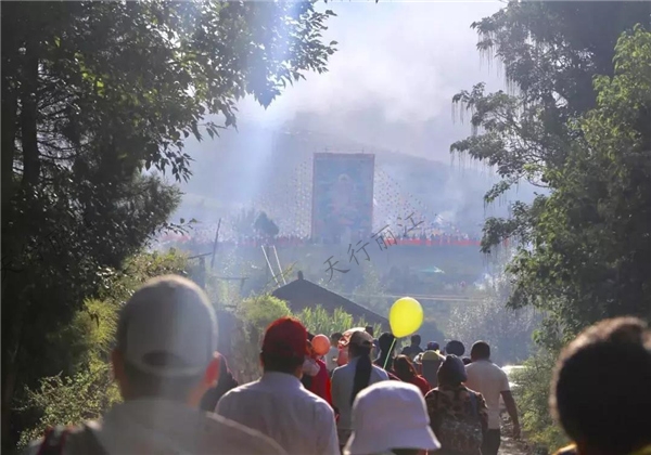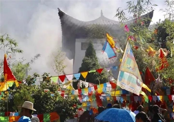 現場香火繚繞,經幡密布,虔誠的人們口中念念有詞,他們在感恩格姆女神的保佑。
