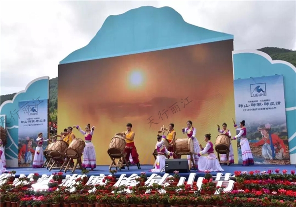 3日上午10時,轉山節盛大開幕了!一段摩梭鼓舞讓觀眾感受到了摩梭漢子的錚錚鐵骨。
