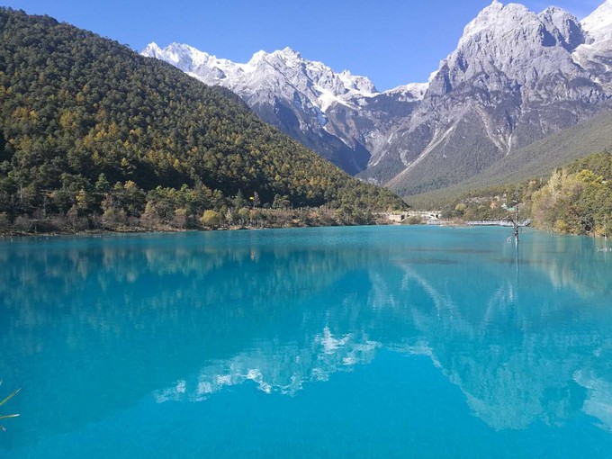 景如其名,水很清澈很藍,也有小九寨溝之稱,因為水和九寨溝一樣很美麗。這里的水之所以是藍色的,是因為湖底礦石富含銅離子,反射藍色光芒,像是一塊藍色的湖水狀寶石躺在山間。在這里隨意拍下的景和人畫面都超級贊,無須任何后期加工。