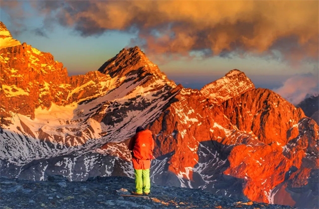 早晨自由起來觀看玉龍雪山的日照金山,隨后收拾物資出發,沿著原始森林步道前行。抬頭便是雪山,放眼遠望則是宛如瑞士阿爾卑斯山脈的牧場風光。適時抵達牦牛坪牧場,打卡拍照玉龍群峰,
