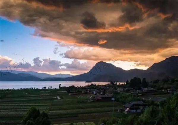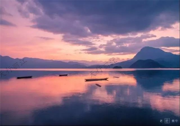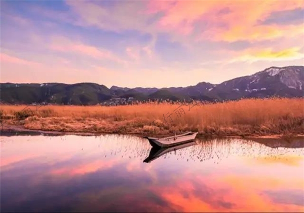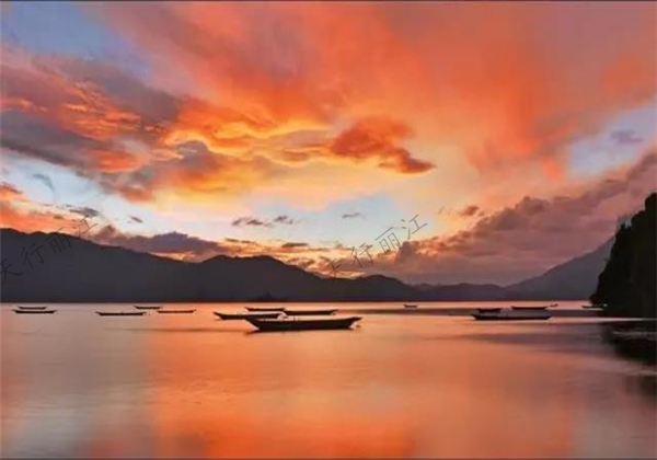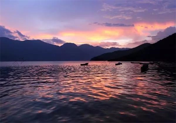 而瀘沽湖的晚霞,是小編有生之年見(jiàn)過(guò)最美的晚霞。湖光山色與晚霞接連一片,看著豬槽船蕩漾在湖邊,小編的心也跟著晚霞的消逝而流走。