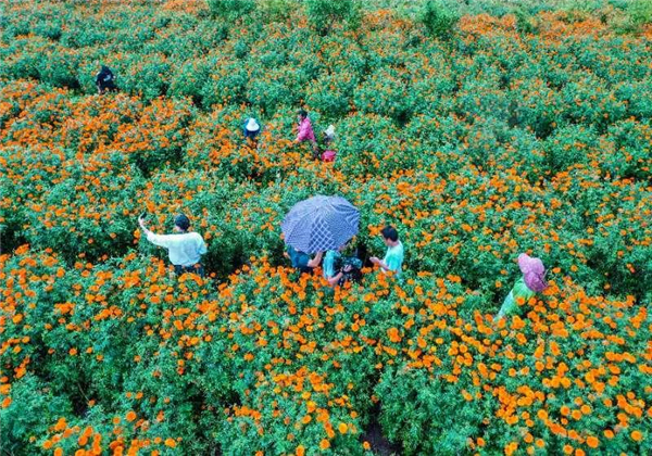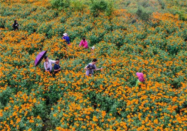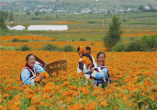 此時,萬壽菊進入采摘季只見農戶臉上洋溢著豐收的喜悅摘花、運花來回忙觀賞花搖身一變成了“致富花”。