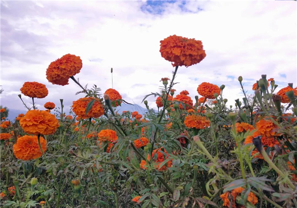 九月來麗江,答應我一定要去看看這些橘色的“海”。初秋的麗江,不只有連綿的雨,還有各處萬壽菊花海。它們試圖抓住金色季節的溫度,在冬日到來之前,燦爛綻放。