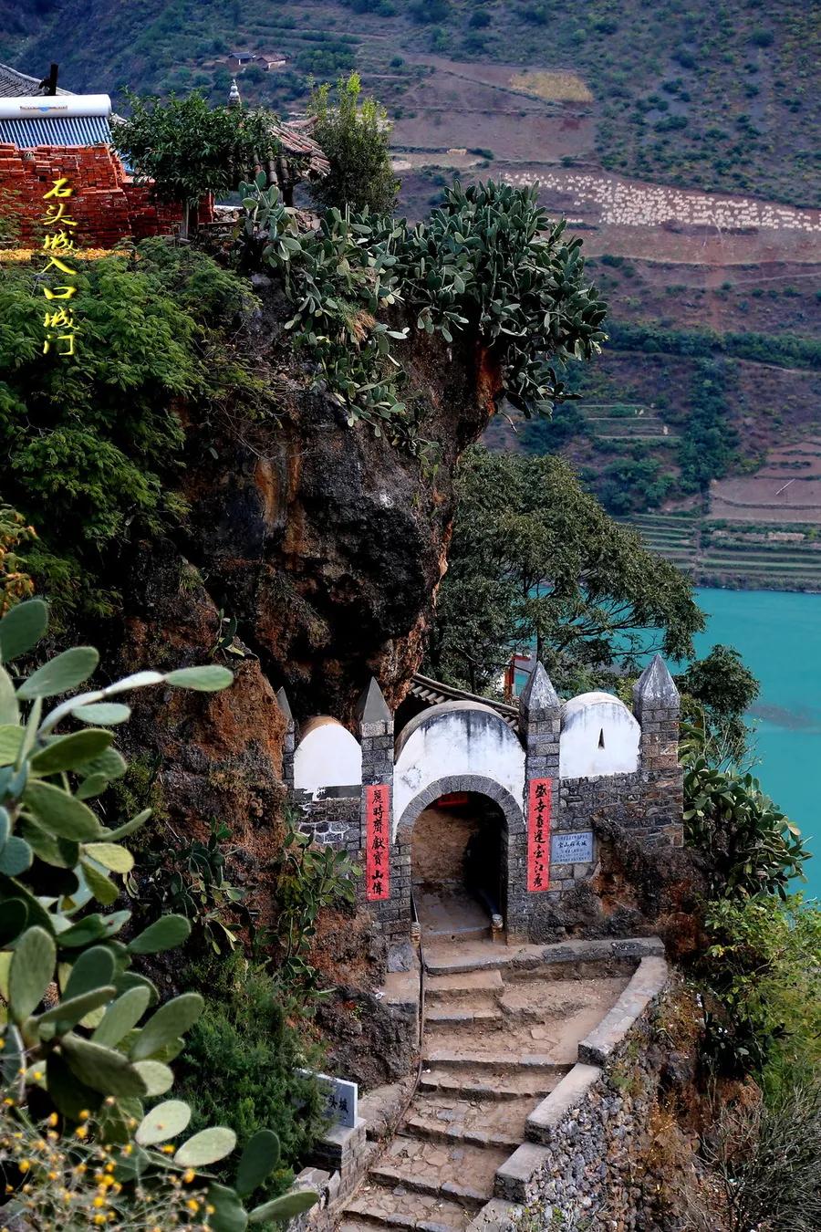在麗江城北110公里的金沙江峽谷中,有一座百余戶人家聚居的石頭城,建在懸崖上一塊獨立的蘑菇狀巨石之上,三面皆臨懸崖絕壁,一面石坡直插金沙江,是真正的天險之城。