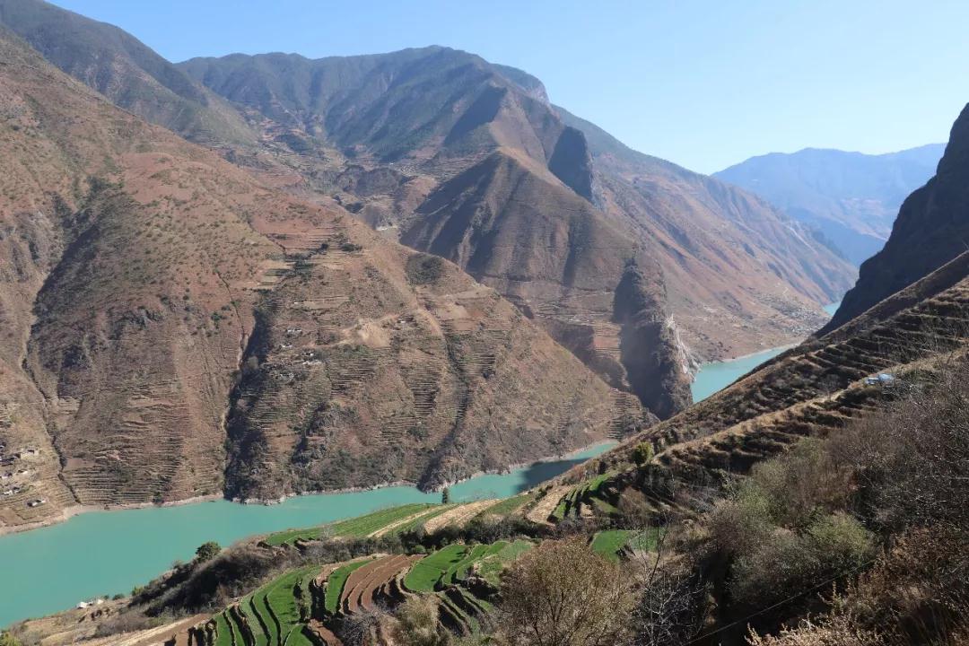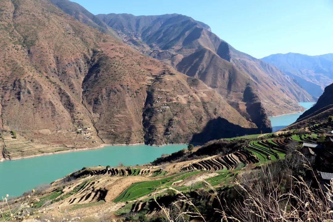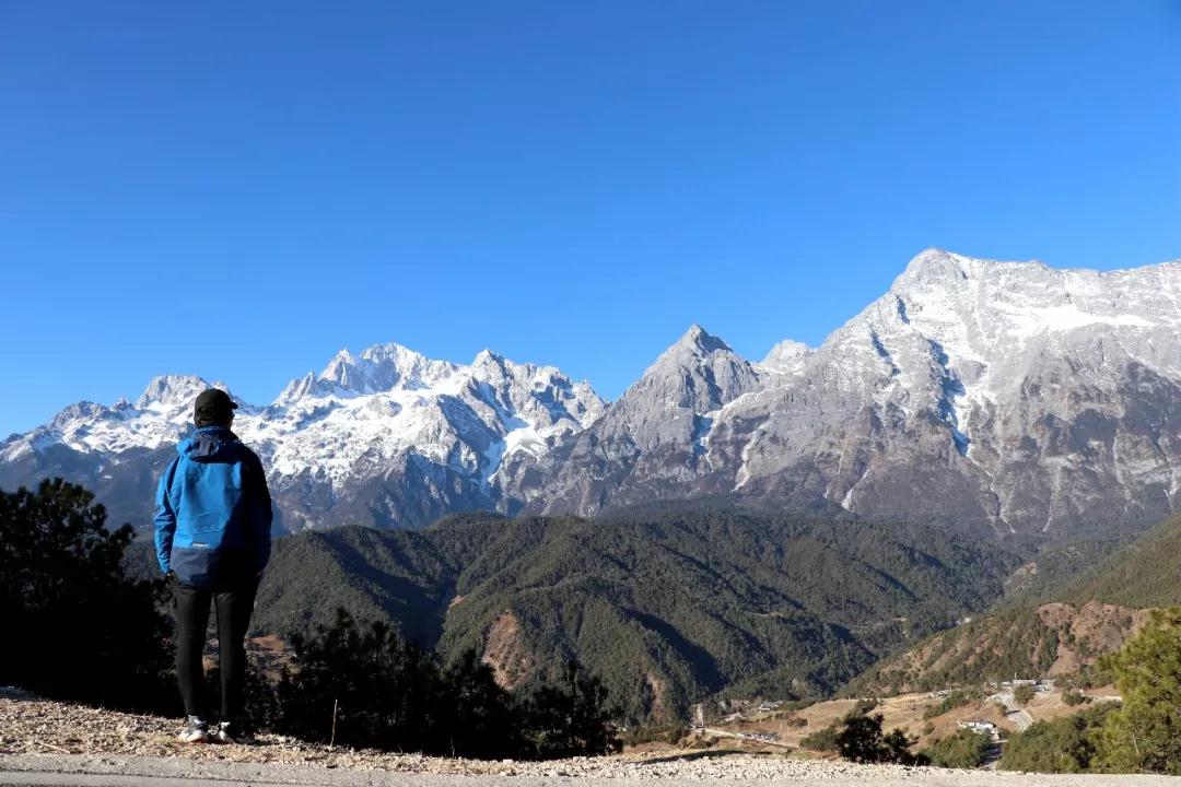 走到觀景臺上,看到一位頭上戴著納西族傳統的藍帽子的老太太,背著柴禾,健步如飛;還有村民在趕著滿載貨物的山地馬,一步一個腳印,嗒嗒嗒地從我面前走過。