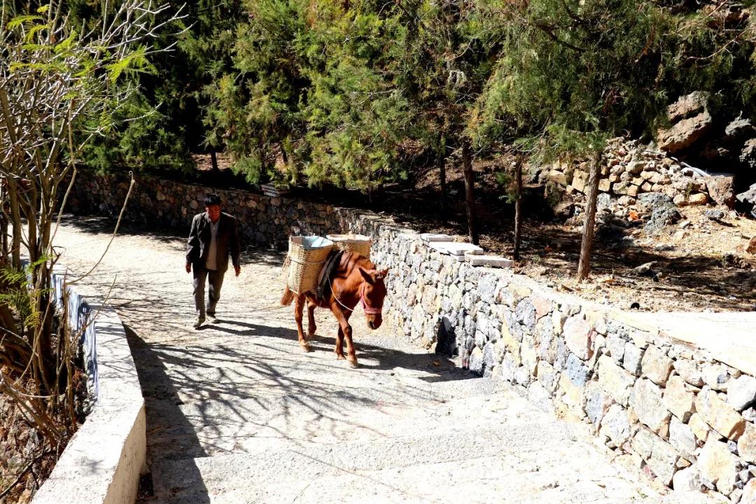 走在村巷中,不時遇到溫順矮小的山地馬,看起來有些袖珍,但吃苦耐勞,穩重謹慎,在山地跋涉如舟在水。來石頭城之前,曾看過一組石頭城的照片,很是震撼,我也迫切地想要拍出這樣的“大片”。