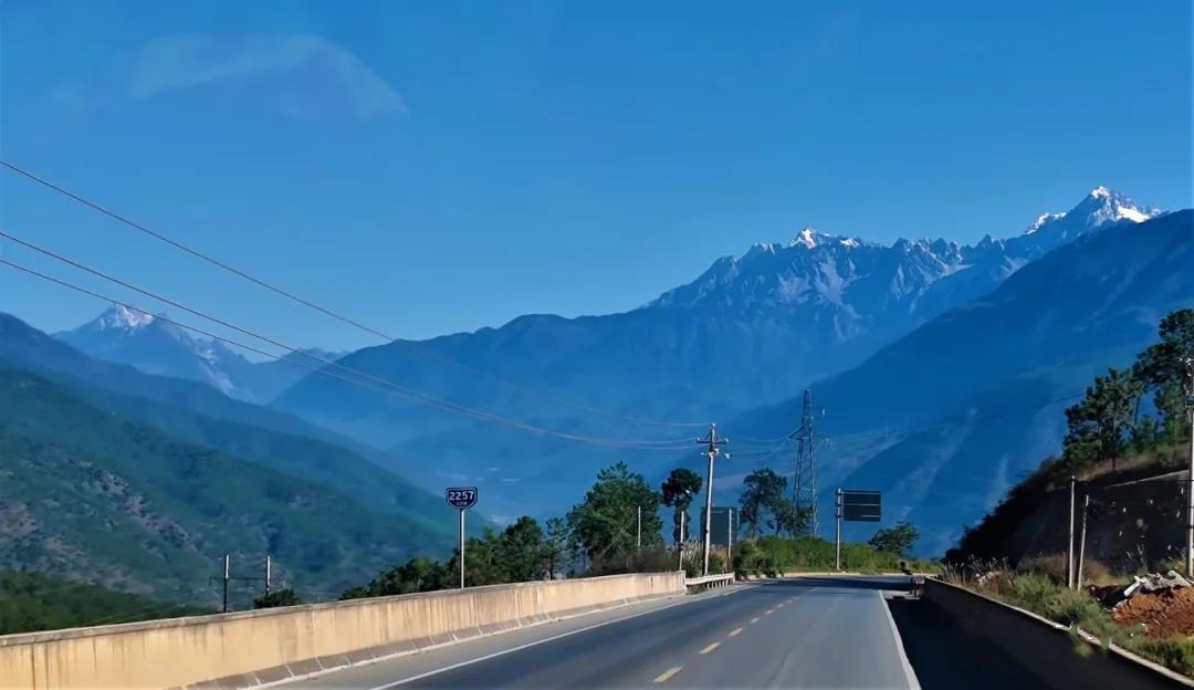找來找去,只有這一張在車里拍的手機照片把玉龍雪山和哈巴雪山放在了一起。