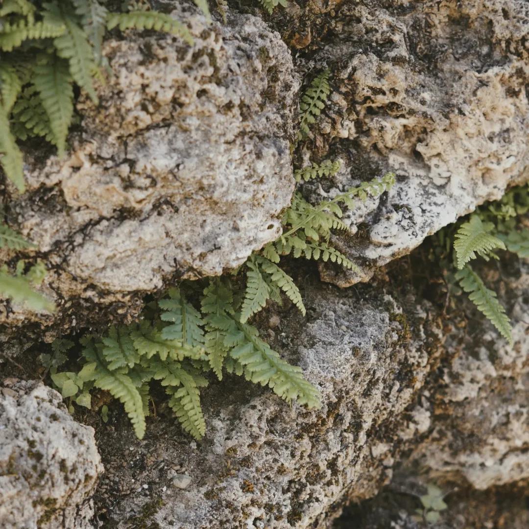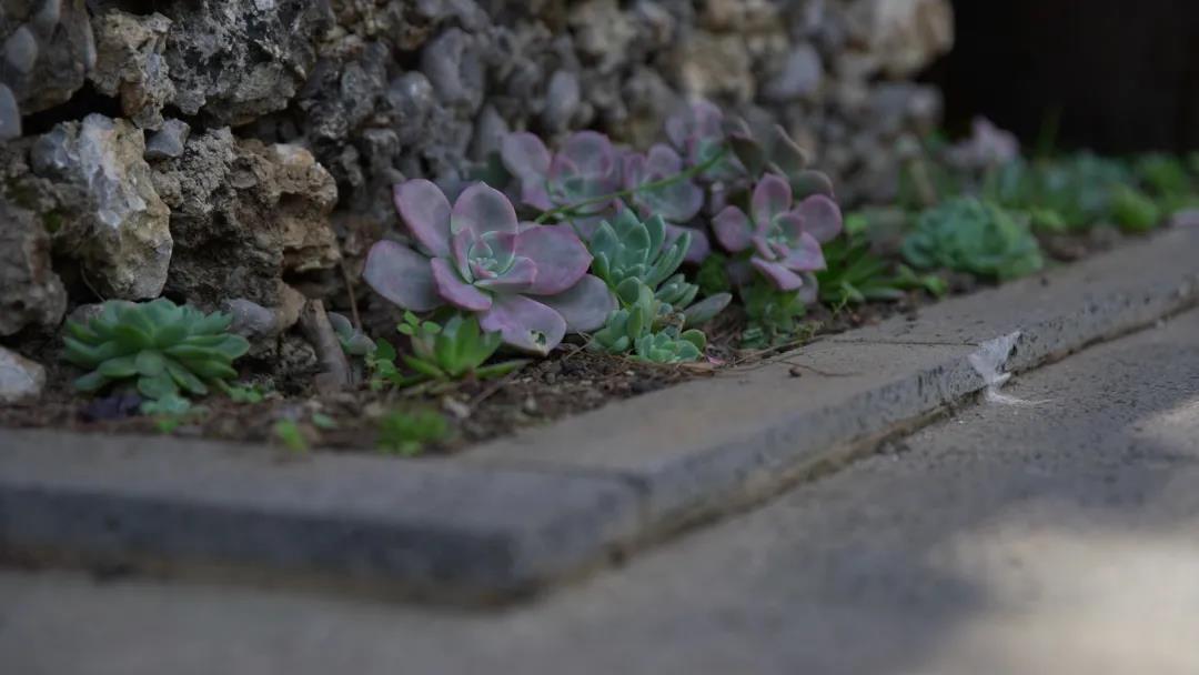 斑駁的石墻、石縫中倔強生長的小草、閑散而居的馬兒、滿目的野花,零亂而富有生機,閑散而讓人心生安寧。