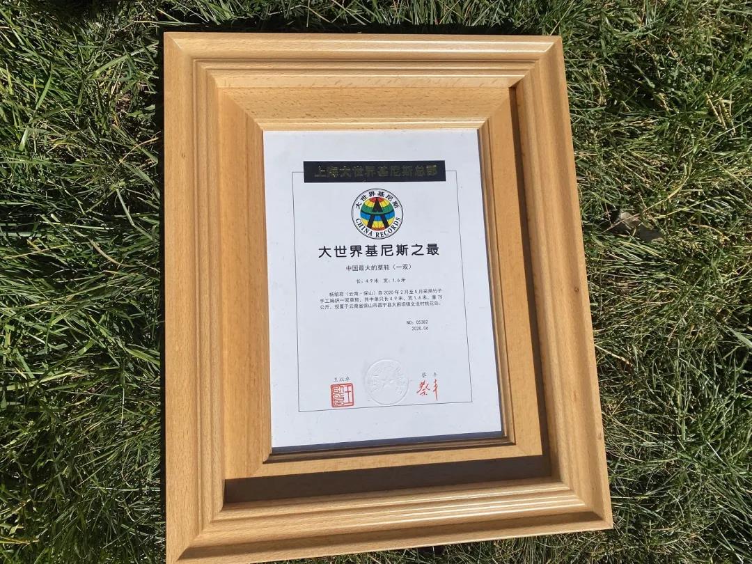 2020年,楊紹君來到麗江打工,來的時候還特意帶了10多雙在老家制作的草鞋。穿梭于束河古鎮的石板路上,他和他穿著的草鞋受到很多游客的關注,因此他萌生了傳承和發揚草鞋編織文化的想法,于是辭掉工作回到老家。在老家保山,他做了一雙長4.9米,寬1.6米,重75公斤的大草鞋,獲得了大世界基尼斯之最。