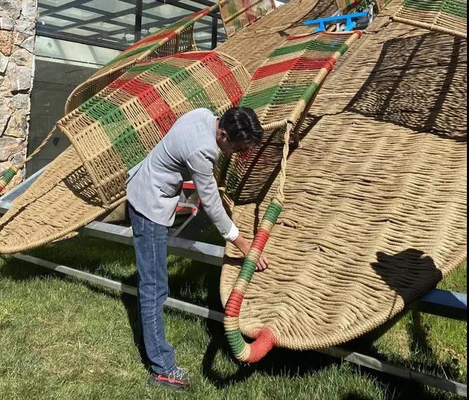 楊紹君說:“現在手工做草鞋的人已經越來越少了,當這個文化失傳了以后,那我們就只能看到‘草鞋’這兩個字,并不知道這個實實在在的東西,它是長什么樣子的,我希望用這樣一個很有視覺沖擊力的表現形式,讓更多的人去知道和認識草鞋編織文化?!?