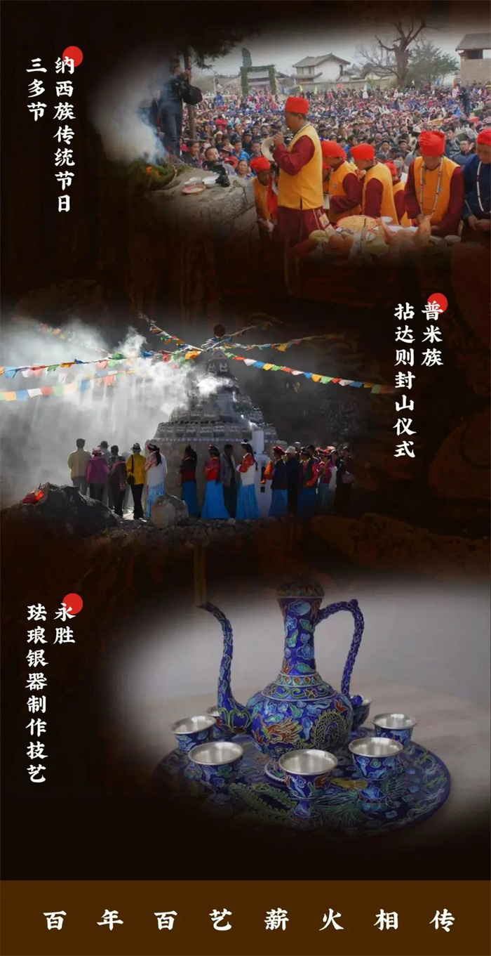 6月10日,國務院公布第五批國家級非物質文化遺產代表性項目名錄。在公布的名錄中,麗江市永勝縣申報的“銀胎掐絲琺瑯器制作技藝(永勝琺瑯銀器制作技藝)”、玉龍納西族自治縣申報的“三多節”、寧蒗彝族自治縣申報的“普米族拈達則封山儀式”被列入第五批國家級非物質文化遺產代表性項目名錄;古城區申報的“童謠(納西族童謠)”列入國家級非物質文化遺產代表性項目名錄擴展項目名錄。