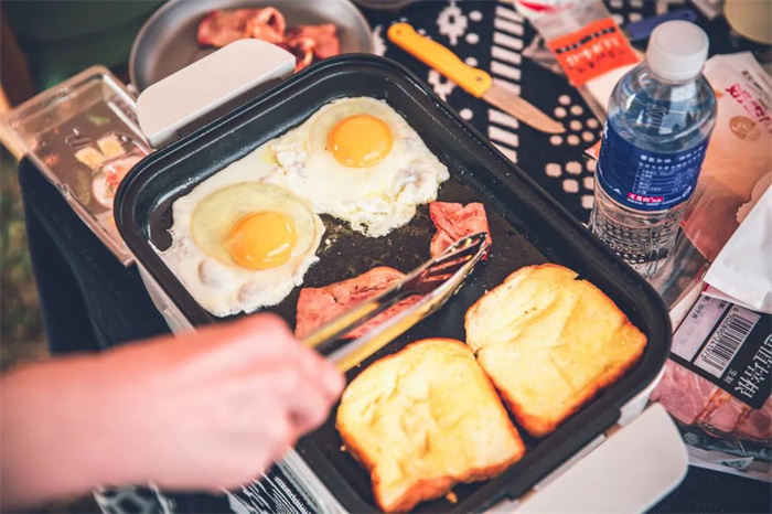 “可以來吃早餐啦!”,向導在帳篷外向我們呼喚。煎到剛剛好雞蛋,蛋白熟了,蛋黃還在是流動的液體,再加上培根和烤焦了的面包,真是令人心情愉悅的健康早餐。