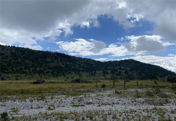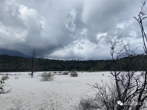 嗯,是干河壩了,雪山冰川沖擊成的河谷,由于前一晚下過雨,這些白白的碳酸鈣成分的東西其實腳踩很可能陷進去,莫名有一種沼澤的感覺,我的鞋子就在這里整個踏進去了,陷進去大概20厘米,好不容易才脫身。在這里,就是小紅書里關(guān)于干河壩95%的取景地了,加上個濾鏡,很仙很寂靜。跟著軌跡是在干河壩右邊爬坡離開,一個小爬坡,到山頂可以俯瞰遠(yuǎn)方。但是后面的下坡就比較艱難了,畢竟積聚了4,5小時的疲憊。但是路是不難走的,我們好像1小時不到就走到了馬路,過了馬路,就是前文提到的甲子頂峰餐廳,在走之前,我擔(dān)心打不到車,叫了順風(fēng)車,結(jié)果滴滴上是有合適的路線,但是沒人接單,不我在問了下旅行社的車,問有沒多空位拼車回麗江,他讓我們直接打車,嚯,還以為不能打。結(jié)果50元出頭,就直接送我們回了古城。至此徒步結(jié)束。關(guān)于出行。這次只帶了點路上吃的干糧,當(dāng)天不曬(甚至是陰天,所以玉龍雪山基本沒蹤影),所以沒喝很多水,但是防曬還是不能省的,不建議穿短褲,10月份去的話,帶件薄外套就夠了,沒有專業(yè)裝備。這條線路目前還是很小眾的,即使在國慶,人都不多,在干河壩處,我們只見到兩伙游客,其他的都是本地人,但不知道為什么他們要走進山里,這個地方小眾到有些本地人都不知道,就知道璞修和石洛克這兩個酒店在開發(fā)這條線作為一個旅行體驗。另外就是我前文提到的ota上這條線360元,往返的車+領(lǐng)隊+零食,感覺自己賺大發(fā)了。順帶,查資料時還種草了一個叫螞蟥壩的地方,也是在玉湖村附近,看圖片也蠻好看的,下次再出發(fā)~