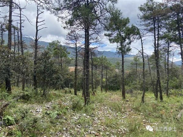 天氣陰沉沉的,龍女湖也不好看,雪山更是了無蹤影——果然,陰天是旅行出片的敵人,這一切都讓我們興致有點低,但還是如此開始了打開導(dǎo)航。在路上先映入眼簾的,是非常緩慢的上坡,一路上的上坡,基本上沒有看到路,如果沒有軌跡,的確會讓人找不到路,進入森林里,路逐漸明朗了起來,時不時有分岔路,但是兩邊都是可以匯合在一起的,由于前一晚下了雨,當(dāng)天的露水非常多,慶幸自己沒有穿短褲。