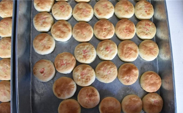 水酥餅在永勝縣俗稱月餅、白餅,有火腿、豆沙、玫瑰、伍仁、紅豆、水果等口味,是中秋佳節(jié)及日常生活中,人們非常喜愛的傳統(tǒng)特色食品。據(jù)周玉華介紹,每年中秋佳節(jié)之際,制作的品類更多,除了生產(chǎn)小號水酥餅,還會制作大、中型產(chǎn)品。