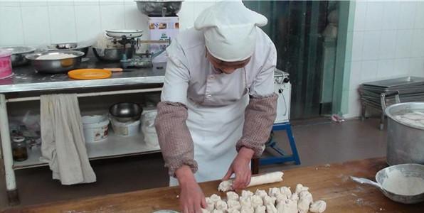 2、制面團(tuán):將精面粉與去除雜質(zhì)的鮮豬板油使勁揉搓成均勻的面團(tuán)。