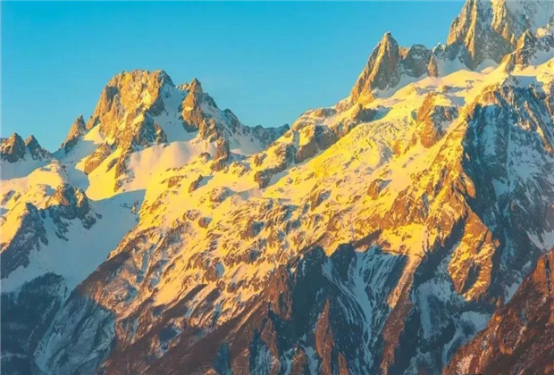 雪山上常年覆雪,冰峰閃爍,莊嚴(yán)且肅穆,每一個(gè)來(lái)麗江的人都能一睹它的尊容、它的艷麗,讓人感嘆的同時(shí)又倍感親切。