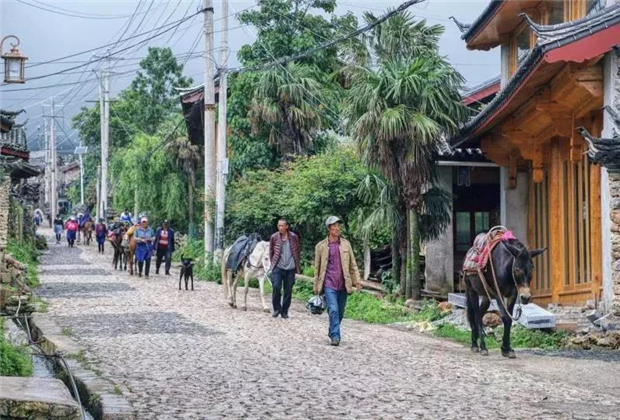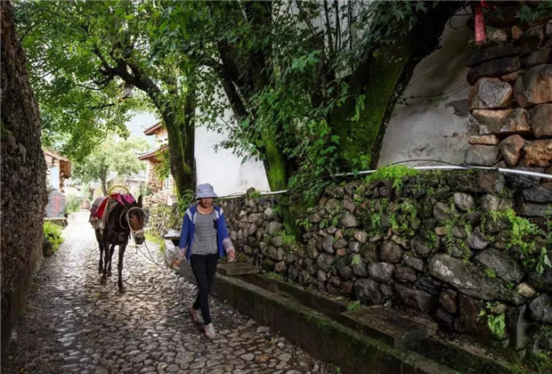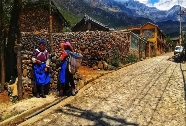 在這里,你會感到最質樸、最原始的氣息。一排排的石頭房子,民居建筑群獨具風格,都是典型的納西族傳統建筑,瓦屋鱗鱗,飛檐畫棟,多為“三坊一照壁、四合五天井”或是“一進兩院”“前后院”……墻體是用當地特殊的褶皺型冰川石頭砌成,國內絕無僅有。