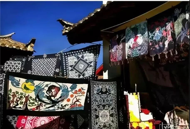 東巴扎染借鑒了白族扎染和苗族蠟染工藝,加入東巴文化的元素,東巴文的象形與民間工藝結(jié)合在一起,使得東巴扎染具有獨特的審美價值和裝飾性。帶走一塊東巴扎染,美觀與實用兼具。