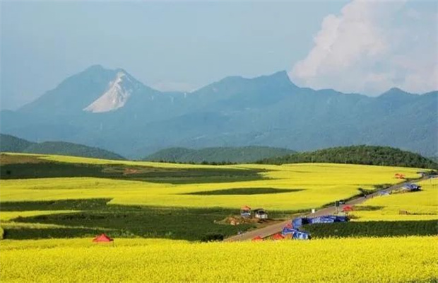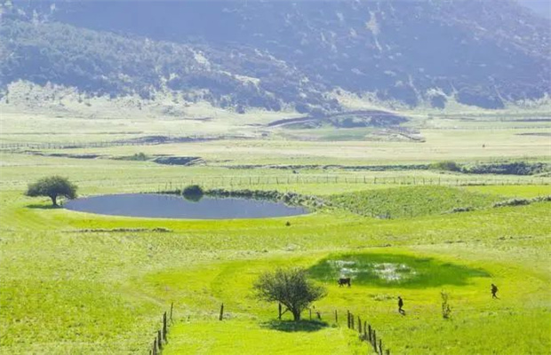 在壩子深處,溪流和聳起的土地,將草甸分出兩半,一半詩意,一半生活。一側草野風光無限好,一側是田園豐收正忙。