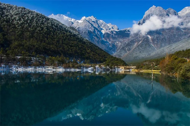 以險(xiǎn)、奇、美、秀著稱的玉龍雪山,任何時(shí)候去都散發(fā)著獨(dú)特的魅力。冬季的玉龍雪山,更是銀裝素裹,隨著時(shí)令和天氣的變化,有時(shí)云蒸霞蔚,玉龍時(shí)隱時(shí)現(xiàn);有時(shí)碧空如水,群峰晶瑩耀眼;有時(shí)云帶束腰,云中雪峰皎潔。站在4680米的雪山之上,云從眼前飄過(guò),整個(gè)人飄飄然如臨仙境,仿佛伸一伸手,就能夠到藍(lán)天。