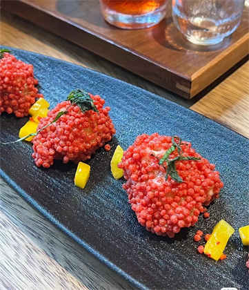 擺盤非常精致蝦仁球外酥肉嫩入口松脆然后又有寂寞沙拉的味道不會很濃剛剛好
