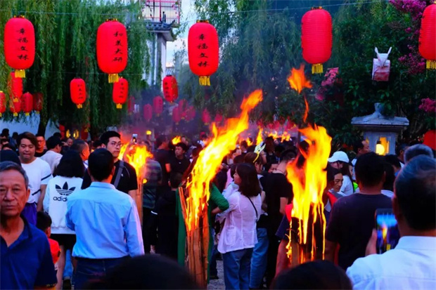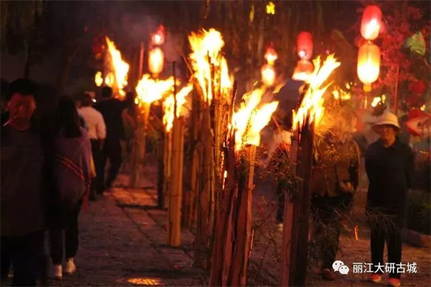 由文林村民和本地經營戶聯合準備300余支1.5米高火把,2支5米高的主火把,在文林新村主街道及水景廣場上布置展出,并在火把節的第一天由居民戶和承租戶一起點燃火把,象征來年紅紅火火,和諧共融。組織開展為期三天的納西火把節打跳,邀請廣大游客和市民群眾參與到逛火把、跳火把以及篝火打跳的活動中來,展現納西火把節的宏大氣勢,營造民族節日的歡樂氛圍,體現熱情好客的民族精神。