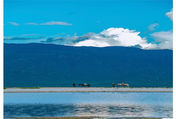 珍珠湖,還未進入玉龍雪山景區(qū)的一些人工湖泊,散落在整個區(qū)域,可以露營野餐,就在雪山下的感覺。