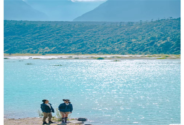 甘海子,從玉龍雪山景區(qū)里進入徒步2 公里就能到達,不算很累。是一個雪山之水匯聚的淺藍色海子,非常夢幻。