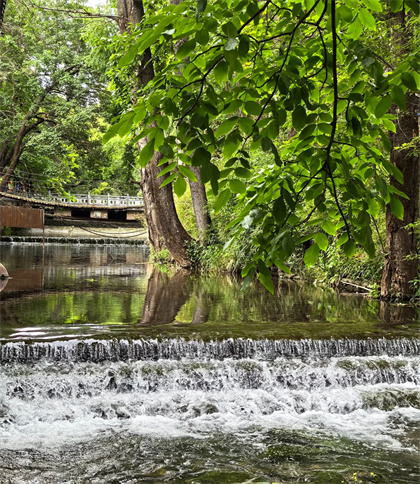 九鼎龍潭的水出自龍泉山山腳的石頭縫隙里,潭水不深,但卻夏季不渾,冬季不淺,一股清澈的流水從石隙中溢出,永遠滋潤著古鎮。潭周綠柳垂地,翠柏指天,泉水清澈,潭中游魚甚多,被當地人奉為神魚。民間傳說,凡是偷吃龍潭神魚者,都會遭災禍。由此,神魚得到保護,自我繁衍,悠閑地在泉水中生息。