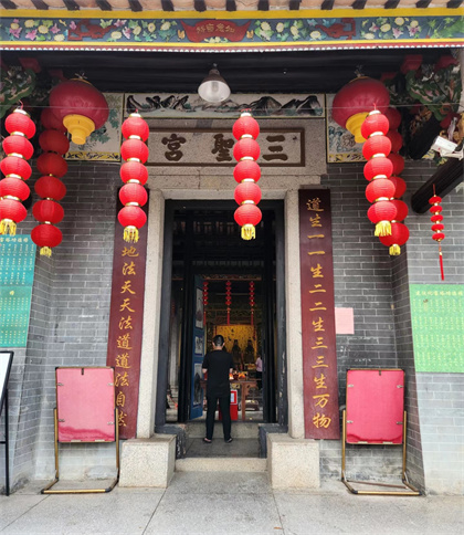圣宮位于束河古鎮仁里路龍泉山下,據乾隆《麗江府志略》載:原為九鼎龍王廟。清光緒年間(公元1875年—1908年),由當地村民改建為三圣宮,平面布局為四合院,呈座西朝東向,其中東樓、南樓倚山就勢,設一層地樓,正殿依山就勢而建,西面墻基為天然巖壁,蔚為壯觀。其內供奉觀音菩薩、皮匠祖師孫臏和九鼎龍王塑像圣宮位于束河古鎮仁里路龍泉山下,據乾隆《麗江府志略》載:原為九鼎龍王廟。清光緒年間(公元1875年—1908年),由當地村民改建為三圣宮,平面布局為四合院,呈座西朝東向,其中東樓、南樓倚山就勢,設一層地樓,正殿依山就勢而建,西面墻基為天然巖壁,蔚為壯觀,其內供奉觀音菩薩、皮匠祖師孫臏和九鼎龍王塑像