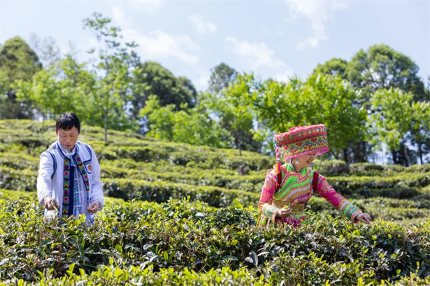 清晨,露珠還點綴在新芽尖上,茶農們便已踩著薄霧踏上茶山。傈僳族姑娘身上的銀飾在晨光中叮當作響,她們腰挎竹